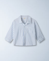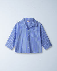 with a relaxed, boxy silhouette, curved hem and dropped shoulder, the elios is a playful take on the classic striped shirt. we love it worn with the sleeves rolled up as a casual beach shirt or and just as sweet dressed up for special occasions