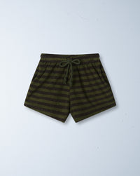 twice the fun with our new two-tone terry shorties. made from super stretchy 100% cotton striped terry, with side pockets, a soft elastic waist with drawcord (perfect for little waists) and a wide leg for easy, everyday wear.